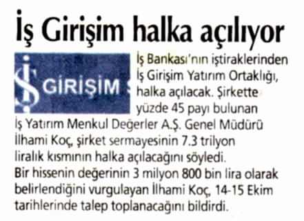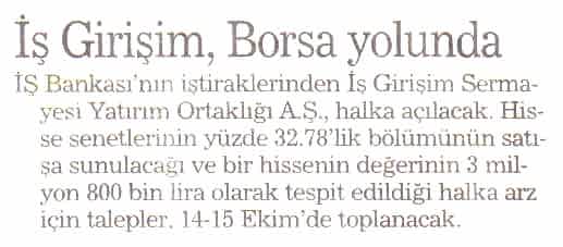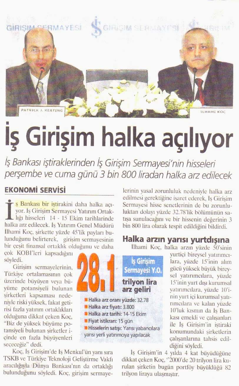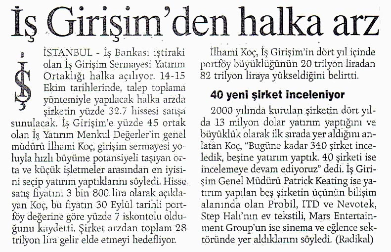 İş Girişim Probil’in arzını Aralıkta bitirmeyi hedefliyor.