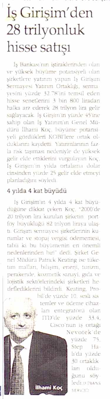 İş Girişim, seneye 20 milyon dolarlık yeni yatırım yapacak.
