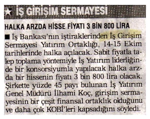 İş Girişim Sermayesi Rekor Kâr Açıkladı