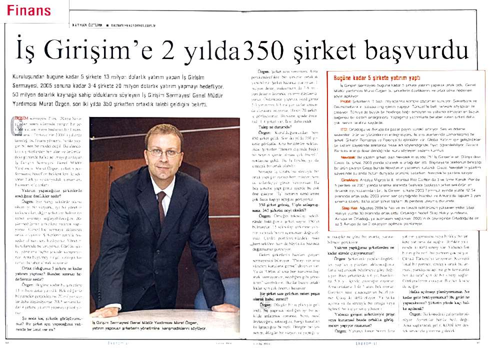 İş Girişim Genel Müdürünün yeni yatırım alanları...