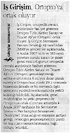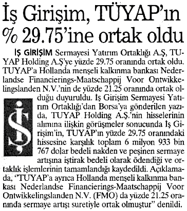 İş Girişim Tüyapın %29.75ine ortak oldu.