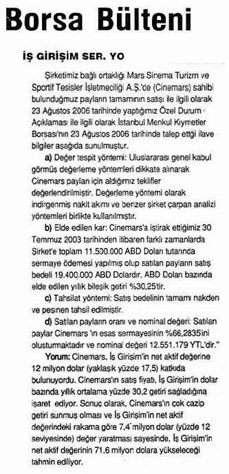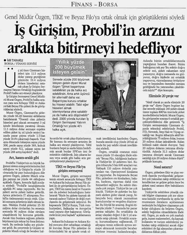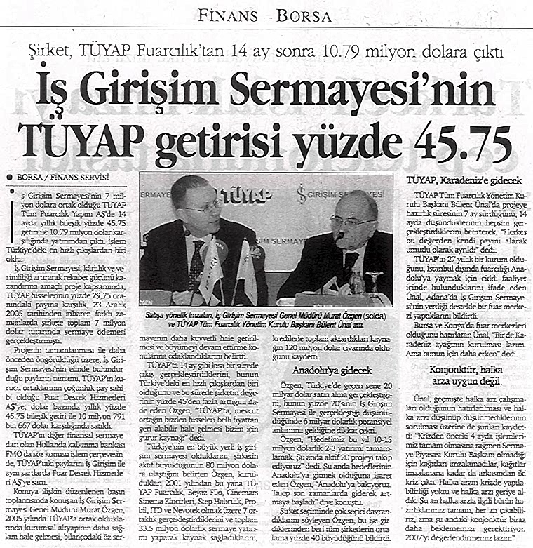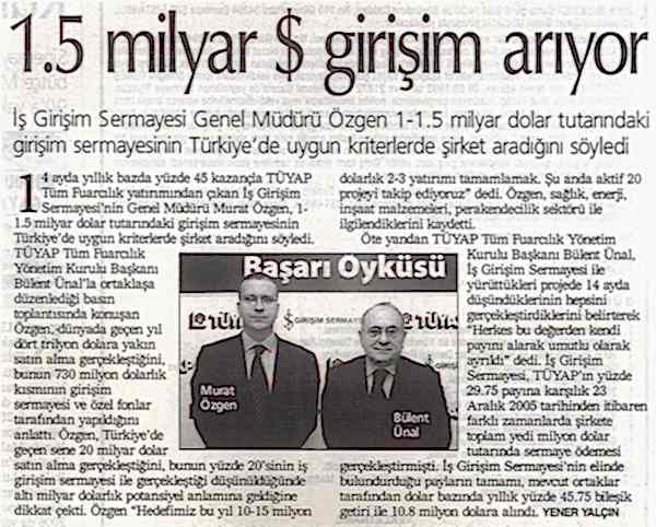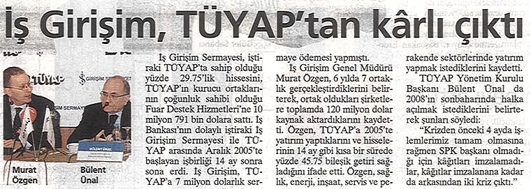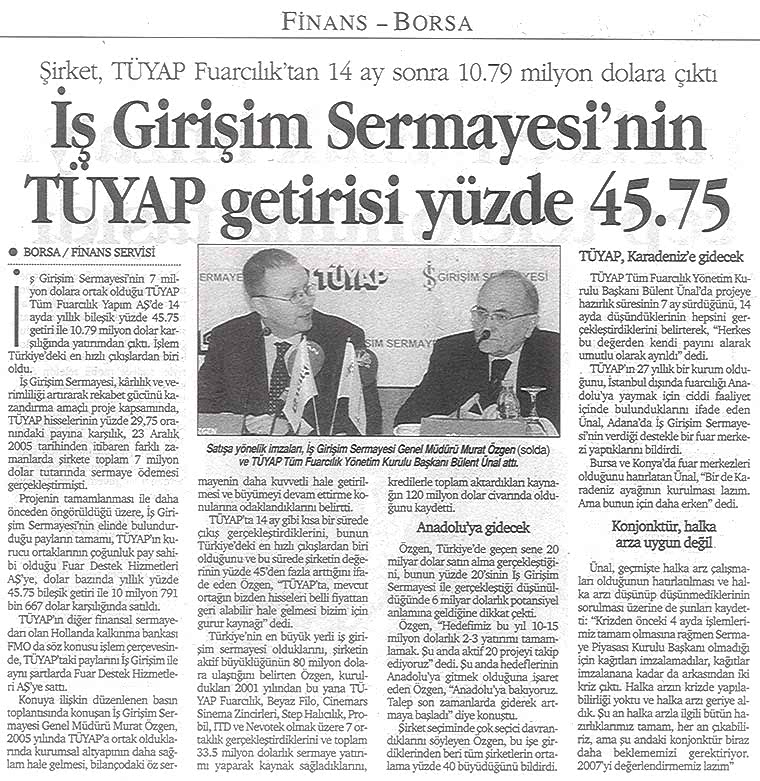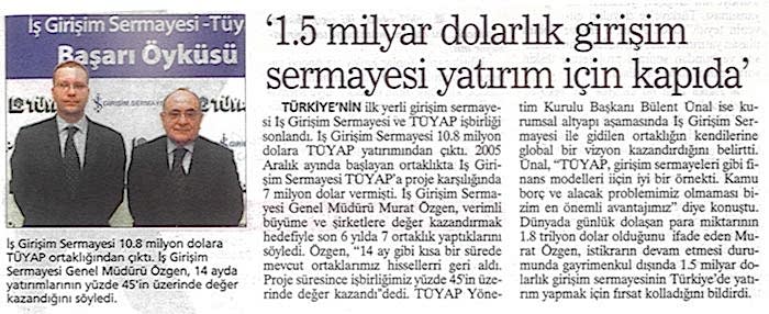 İş Girişim: 10.7 milyon doları alıp Tüyaptan çıktık.