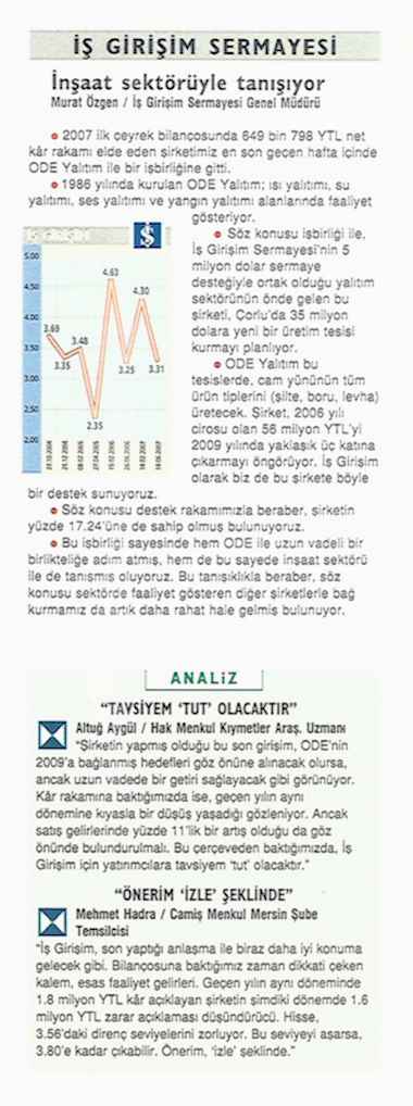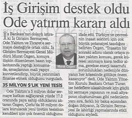 İş Girişim destek oldu Ode yatırım kararı aldı.
