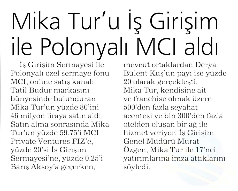 Mika Tur'u İş Girişim ile Polonyalı MCI aldı